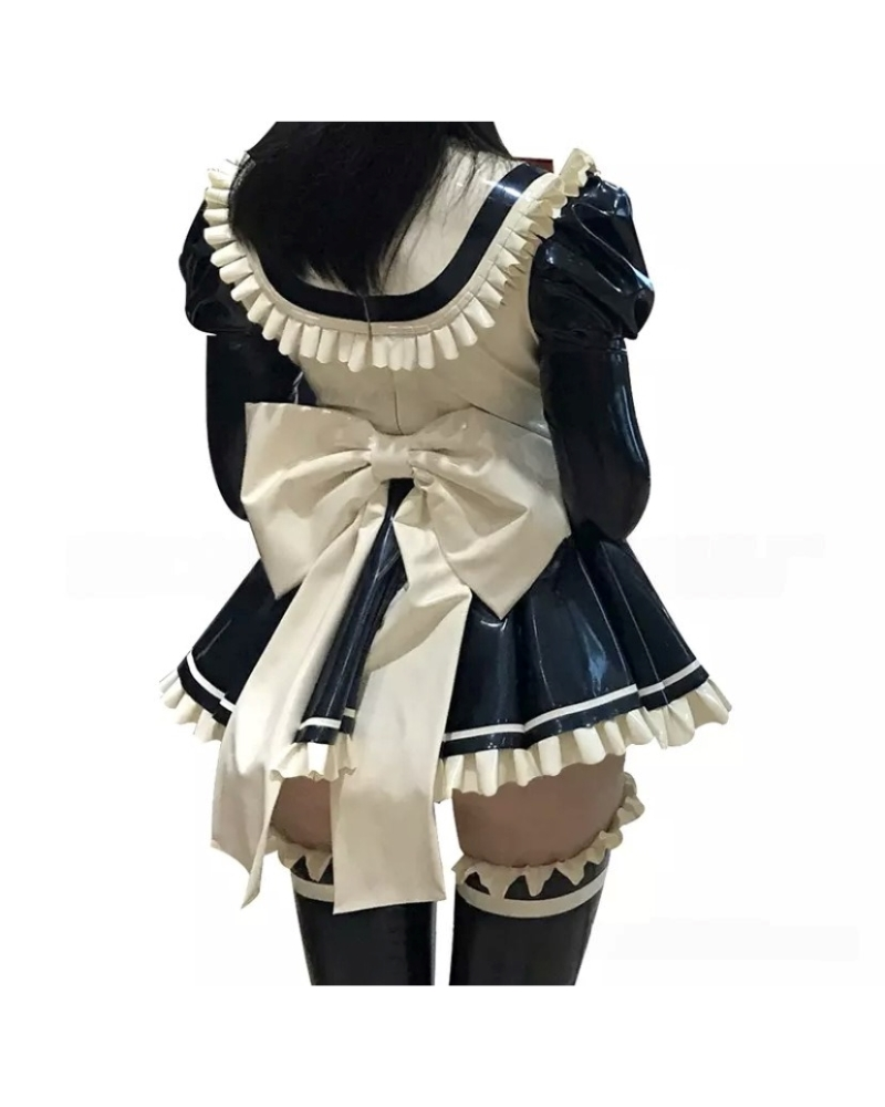 Latex 2D anime maid stage performance costume dress
