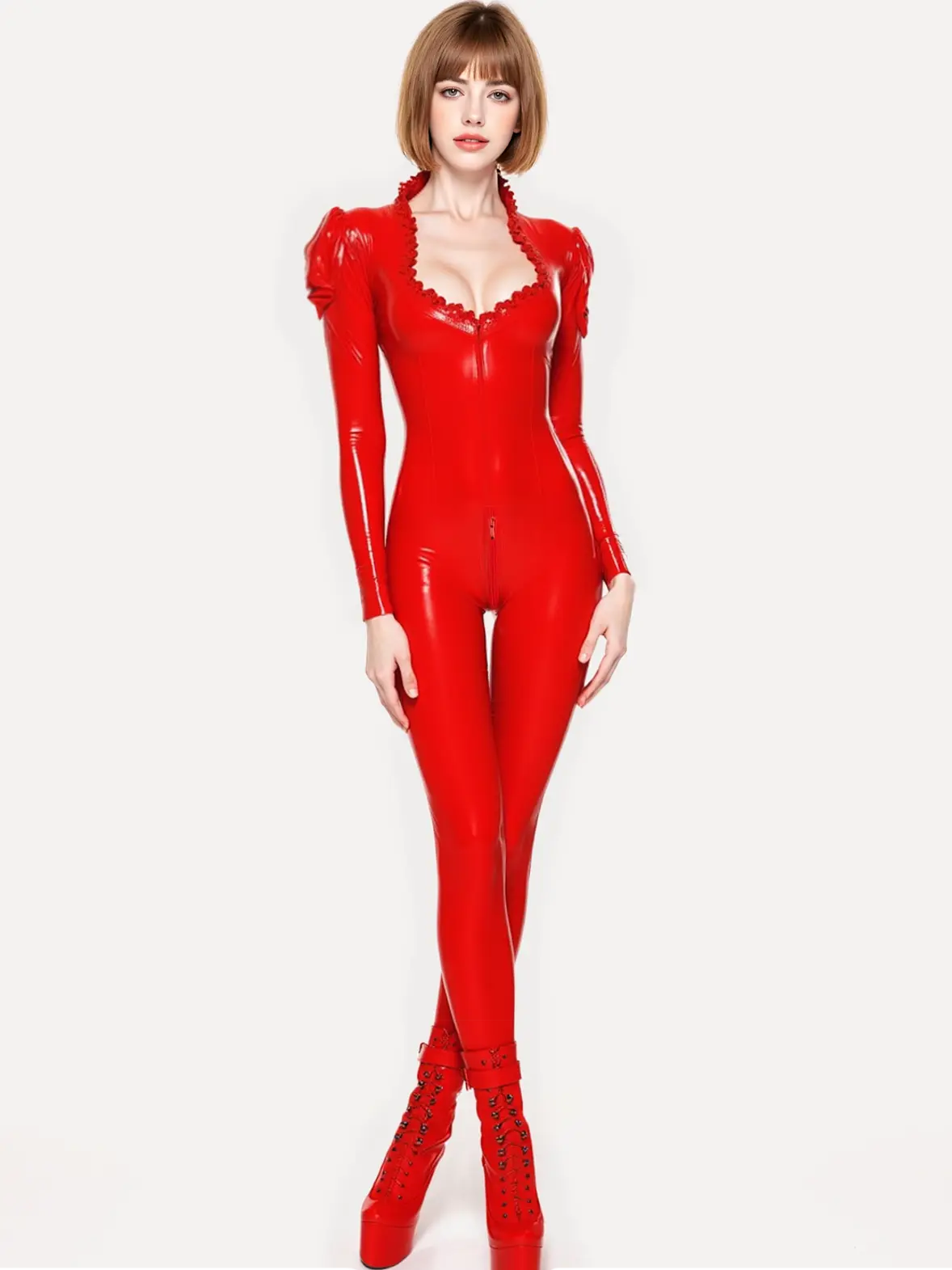 Latex Delilah Frilled Neckline Catsuit