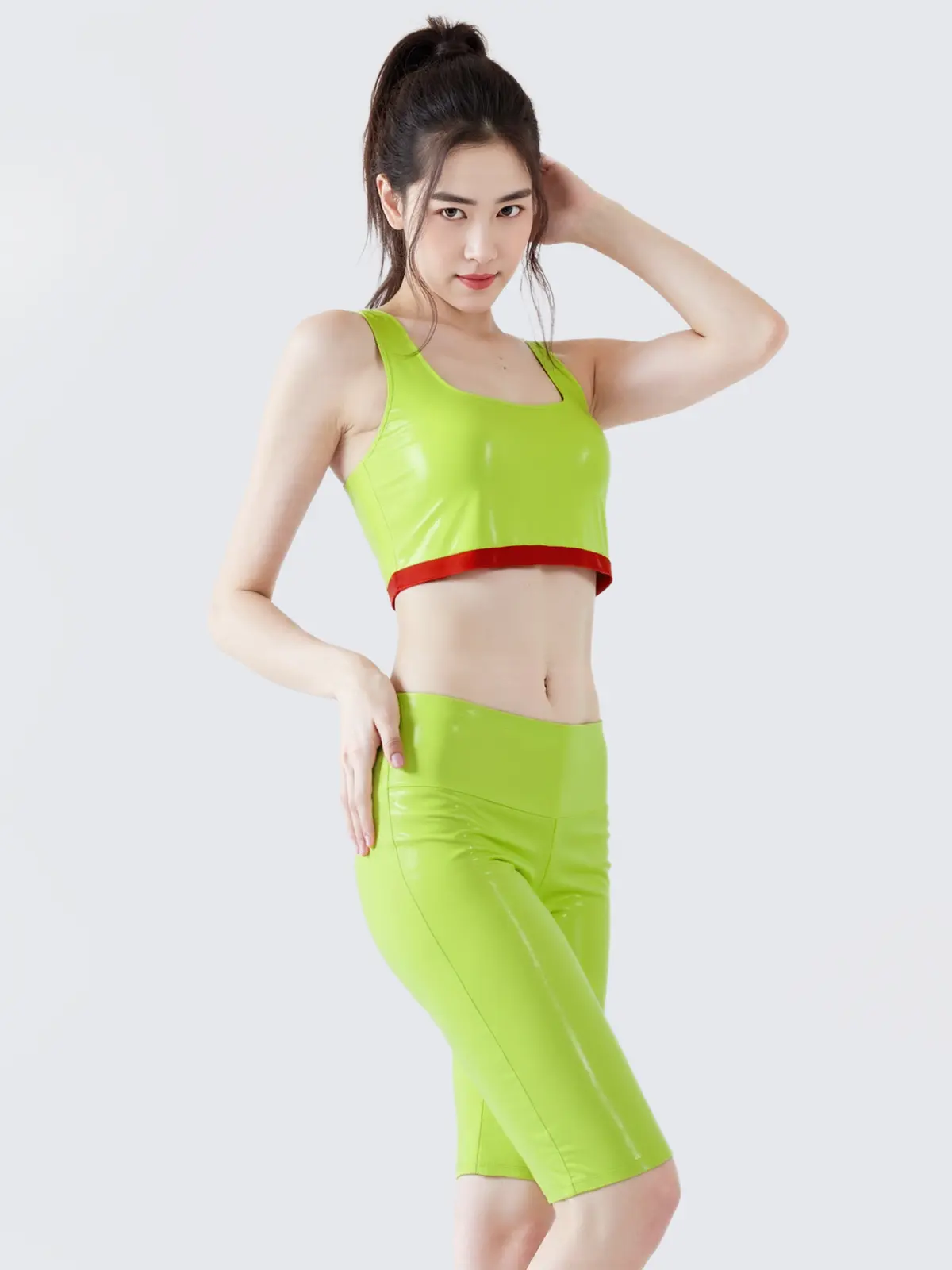 Latex Long Sleeve Top with Contrast Rivet Epaulettes