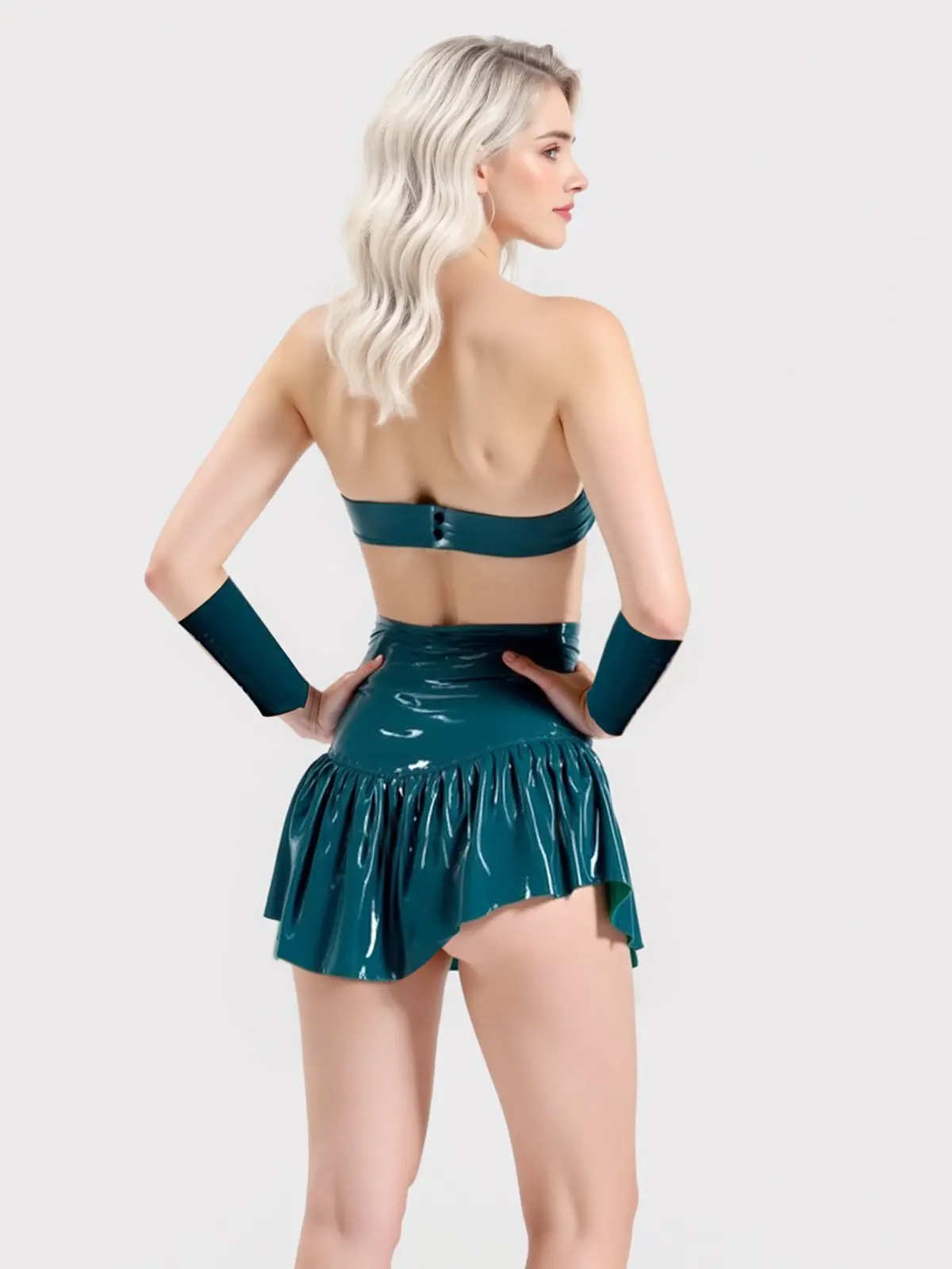 Latex Livia Asymmetric Pleated Mini Skirt with a Silver Buckle