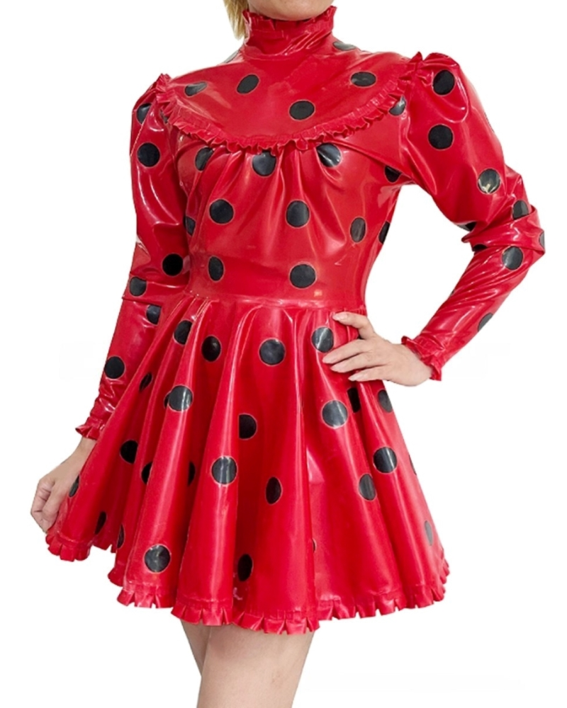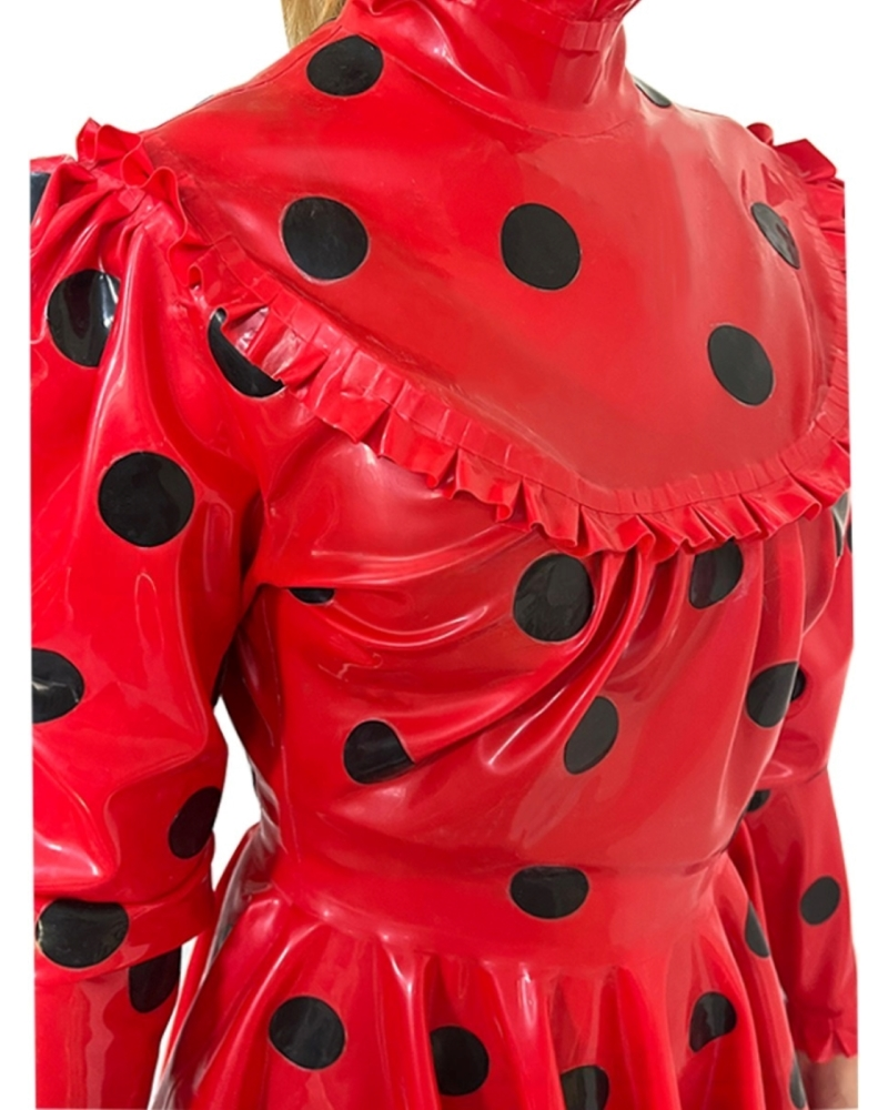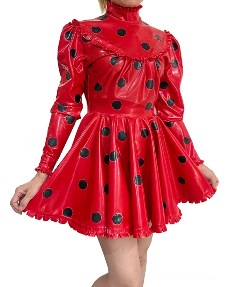 Latex Long sleeves polka dot pleated puff sleeves retro dress
