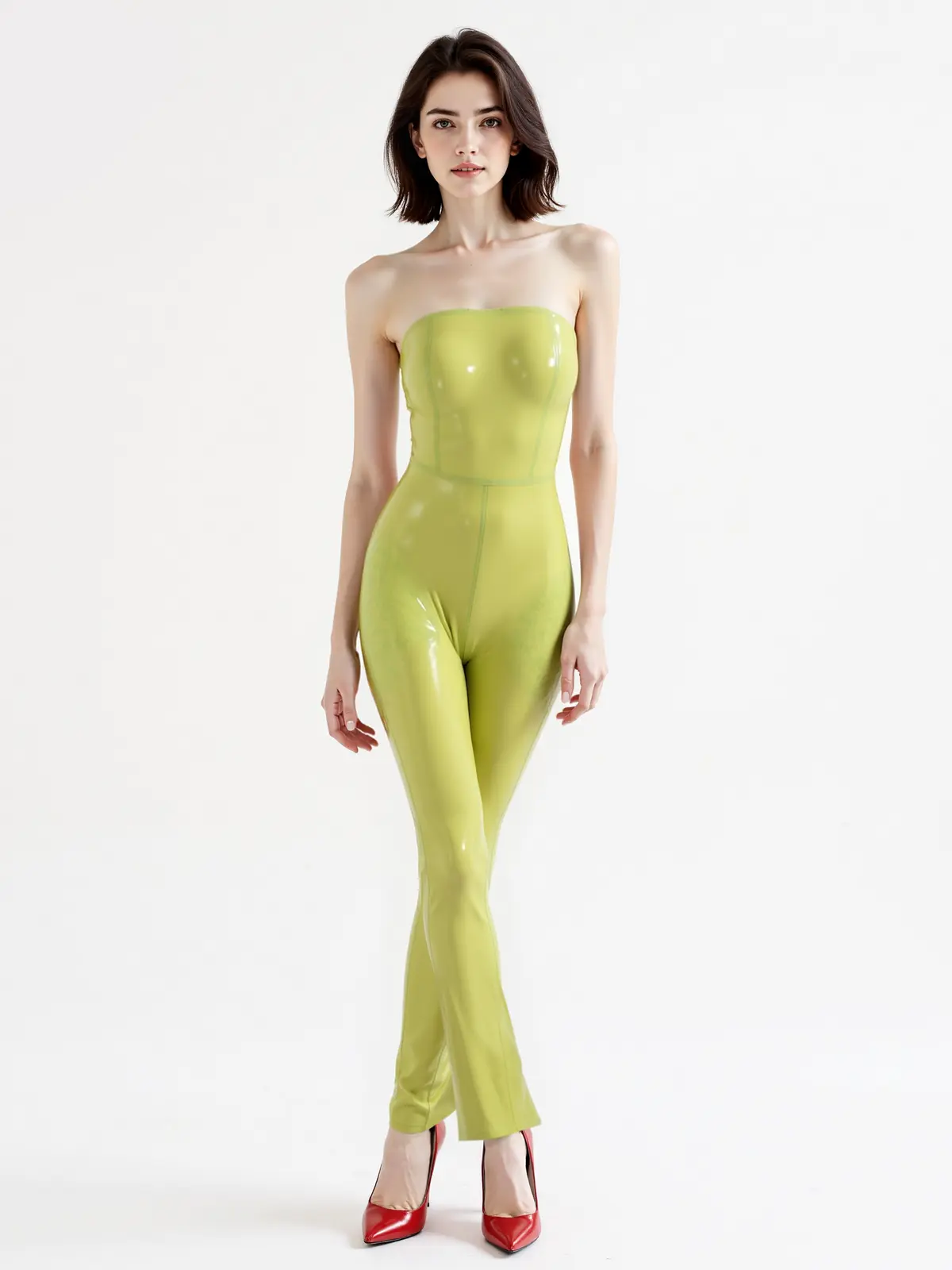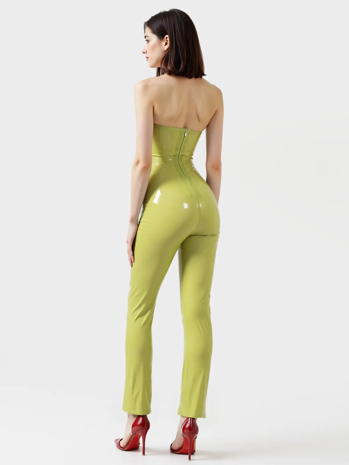 Latex Low-Cut Strapless Pants Suit