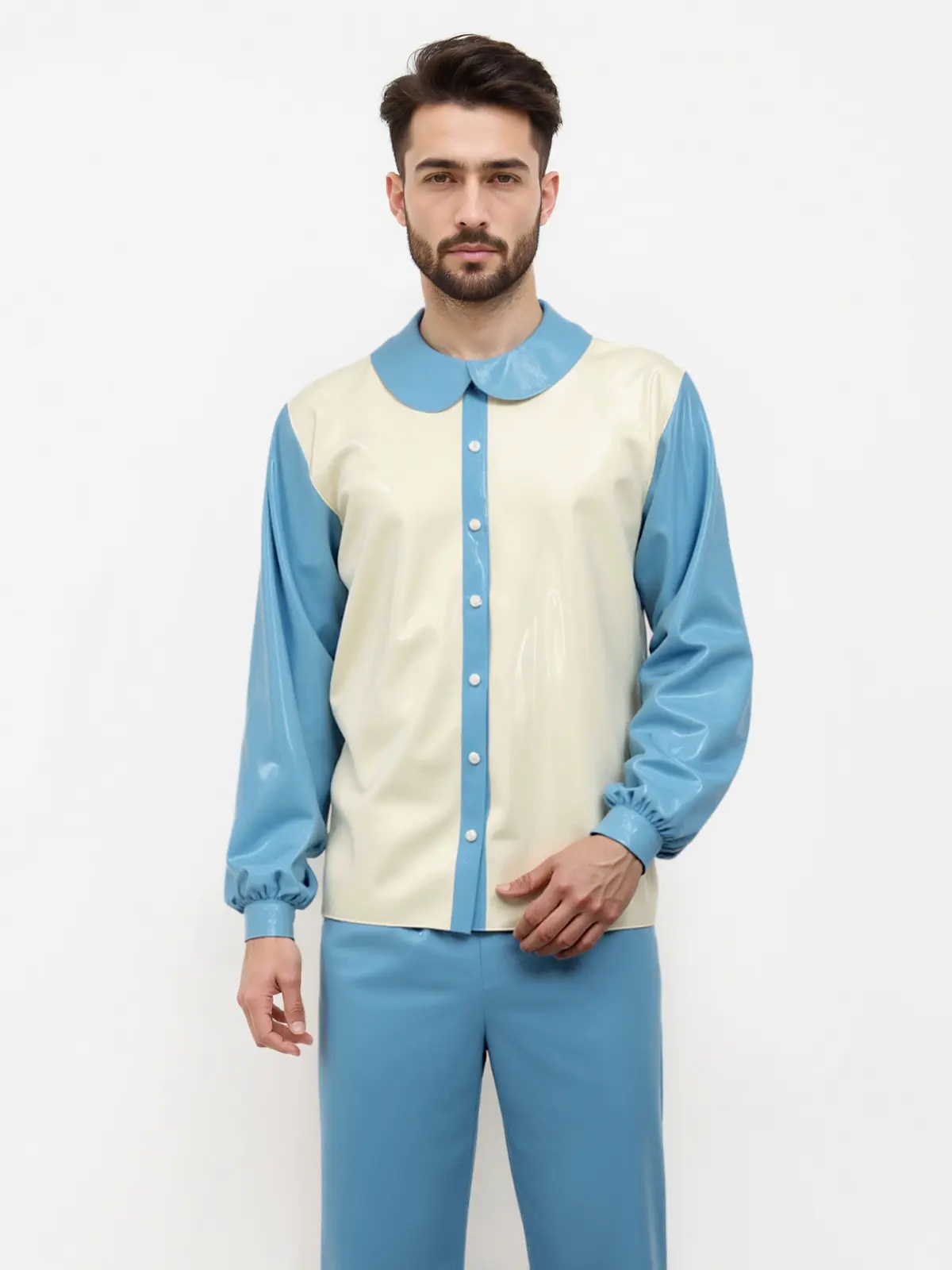 Latex Pyjama Shirt with button front closure. Timelessly elegant design and a cut for a loose relaxed silhouette with a Peter Pan collar.