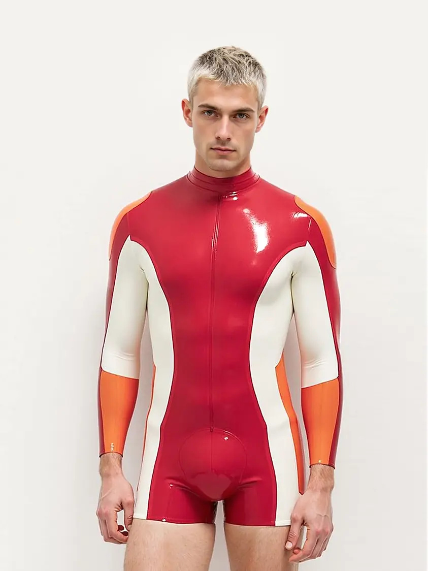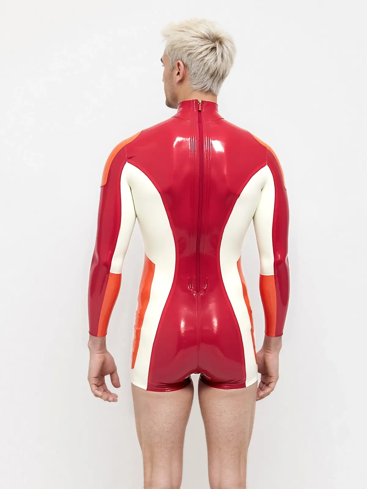 - Long-sleeved & short-legged romper suit in three bold colors;